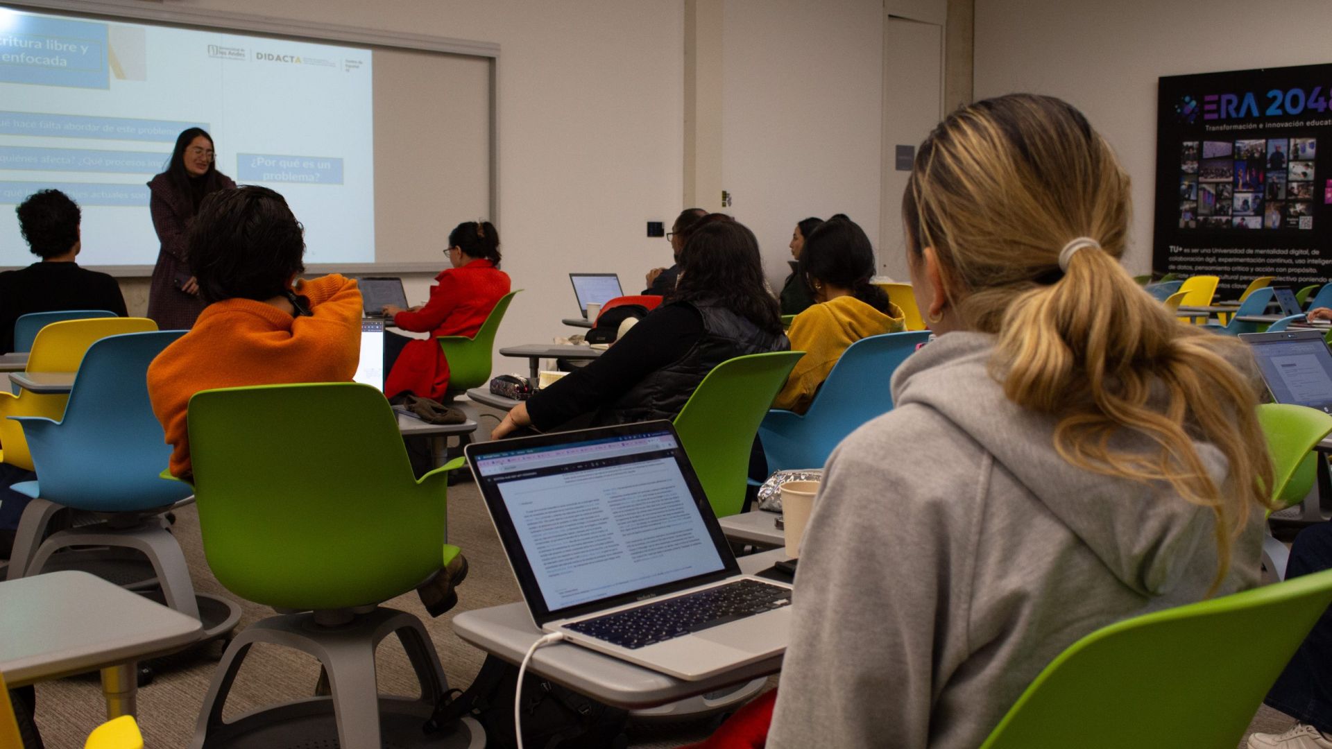 En el Campamento de Tesis, iniciativa del equipo pedagógico del Centro de Español – DIDACTA, acompañamos a estudiantes de posgrado de la Universidad de los Andes en la escritura de sus trabajos de grado. Este espacio se realiza cada semestre, en modalidad presencial, durante una semana y ofrece un entorno estructurado para avanzar de manera significativa en la construcción de los textos de investigación.